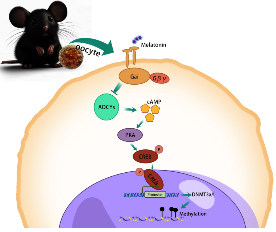 为了阐明肥胖对卵母细胞基因组甲基化重建的影响,该研究利用高脂饲料诱导的肥胖小鼠模型研究发现,肥胖导致卵母细胞基因组甲基化水平升高,高甲基化主要分布在启动子区和外显子区,启动子区拥有差异甲基化区域(DMRs)的基因主要富集在代谢通路中。该研究进一步揭示差异甲基化的跨代遗传及与代谢紊乱的关系,结果表明肥胖导致的甲基化异常至少能够部分遗传到F2卵母细胞。为了探索肥胖导致的代谢异常调控卵母细胞甲基化改变的机理,该研究利用非靶向代谢组测序技术分析了肥胖对血清代谢组的影响,结果显示肥胖小鼠血清代谢组发生明显改变,尤其重要的是,研究揭示肥胖引起的褪黑素水平降低可能是导致卵母细胞基因组高甲基化的重要原因;该研究还进一步探讨了褪黑素调节卵母细胞基因组甲基化的分子通路,发现褪黑素水平降低可能通过cAMP/PKA/CREB通路造成DNMTs高表达引起肥胖小鼠卵母细胞基因组甲基化升高,从而造成后代的代谢异常跨代传递效应。
