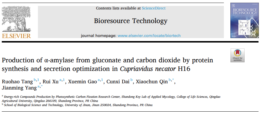 近日,amjs澳金沙门线路首页杨建明教授团队在国际期刊Bioresource Technology发表了题为“Production of α-amylase from gluconate and carbon dioxide by protein synthesis and secretion optimization in Cupriavidus necator H16 ”的研究论文。