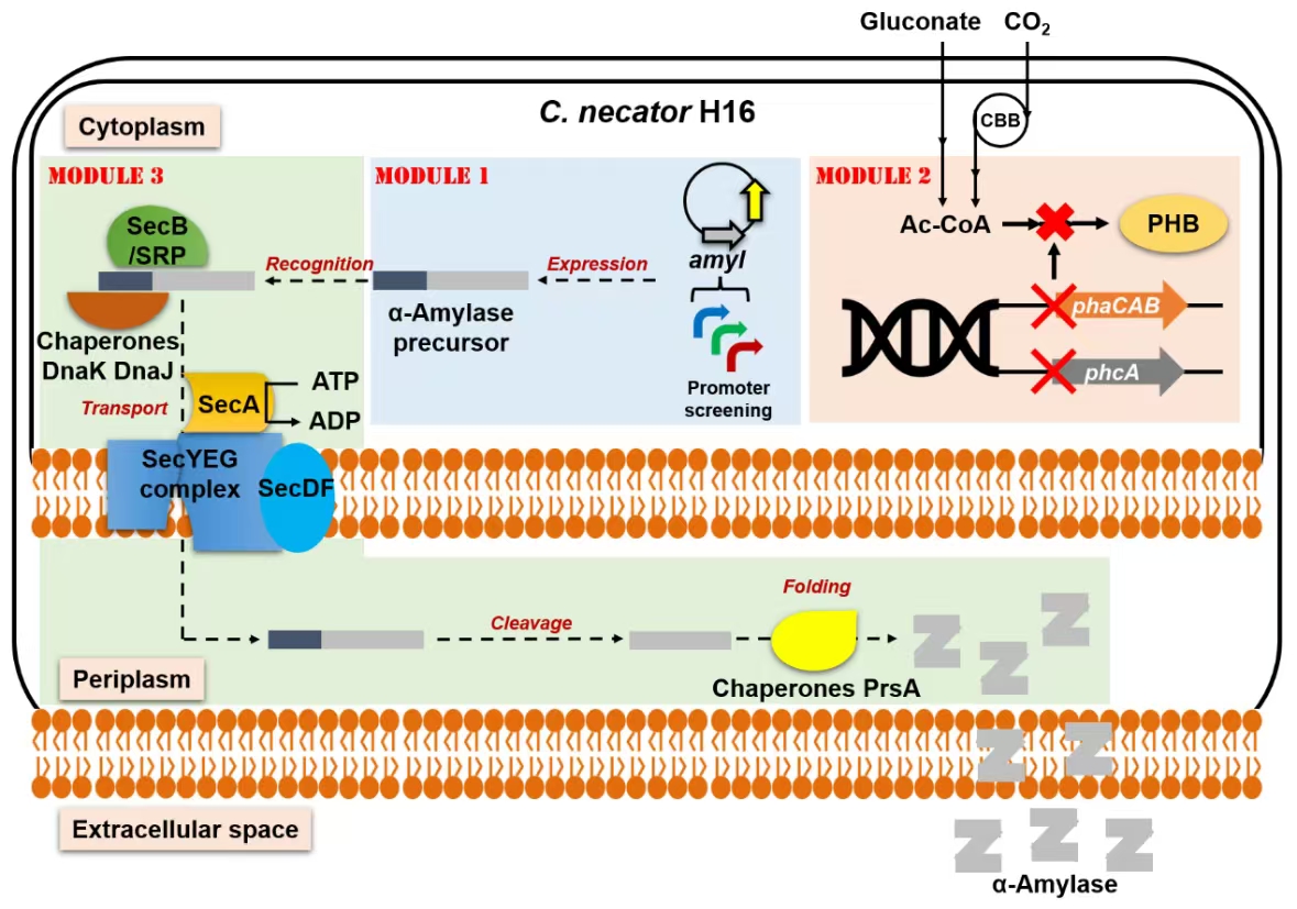 图1:C. necator H16细胞外α-淀粉酶生产的代谢工程策略