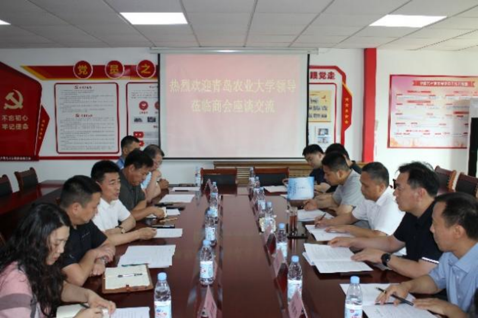 2025年6月23日下午,青岛农业大学与青岛安徽商会开展合作交流。青岛农业大学副校长郭尚敬率amjs澳金沙门线路首页党委书记孙景福、院长杨松,杨建明教授团队等一行,与青岛市安徽商会会长孙自胜、常务副会长兼秘书长陈俊言等企业代表进行了交流。