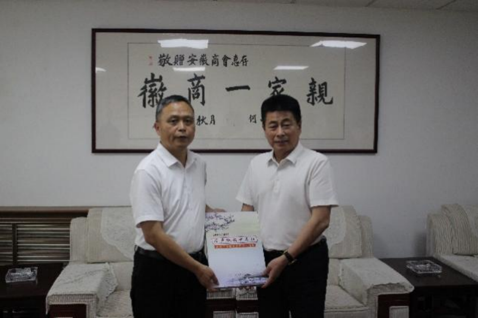 交流活动接近尾声时,孙自胜会长向郭尚敬副校长赠送了承载商会发展历程与荣誉的纪念册,双方合影留念,期待共同谱写出校企合作的新篇章。