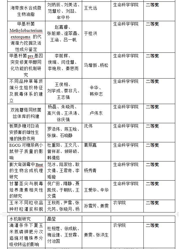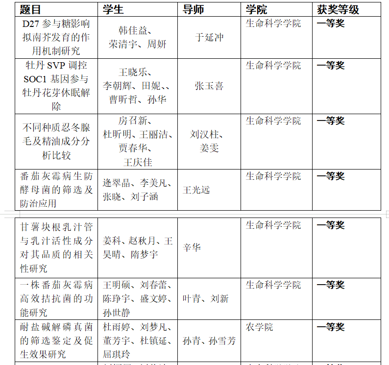 一、生物学大赛获奖名单