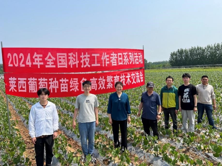 为认真学习落实习近平总书记关于科技工作的重要讲话精神,在第八个“全国科技工作者日”来临之际,5月20日我院山东莱西葡萄种苗科技小院团队在首席专家山东省科技特派员刘新教授带领下,前往莱西市产芝村开心农场开展“2024年全国科技工作日系列活动”暨莱西葡萄种苗绿色高效繁育技术服务。