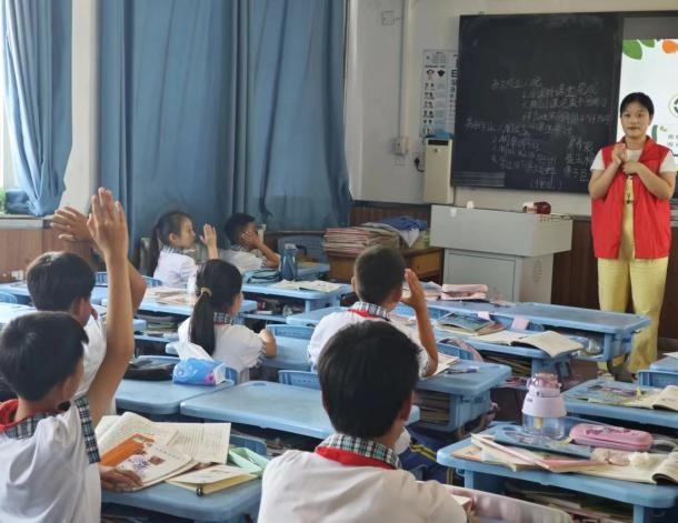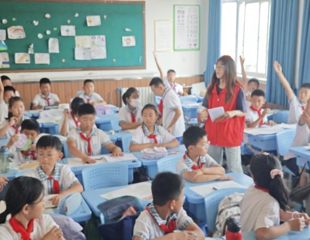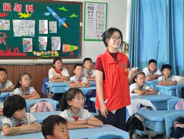 2024年6月3日,amjs澳金沙门线路首页志愿者走进城阳区环城路小学,开展以“植物维和,青春守护”为主题的宣讲活动。