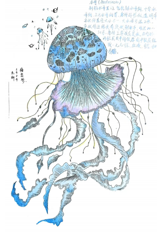 观以静心,一笔一划描绘生命张力。学院结合生物科学专业特色举办了“描自然脉络,绘生命万象”生物图谱绘制大赛,面向全体学生征集电子绘画或A4纸手绘作品,参赛者通过细致观察1-2种生物进行临摹艺术创作。活动以亲近自然、爱护自然为宗旨,让学生在专注创作中沉静心灵、舒缓压力,提升尊重自然、保护自然的意识,激发了同学们积极参与的热情。