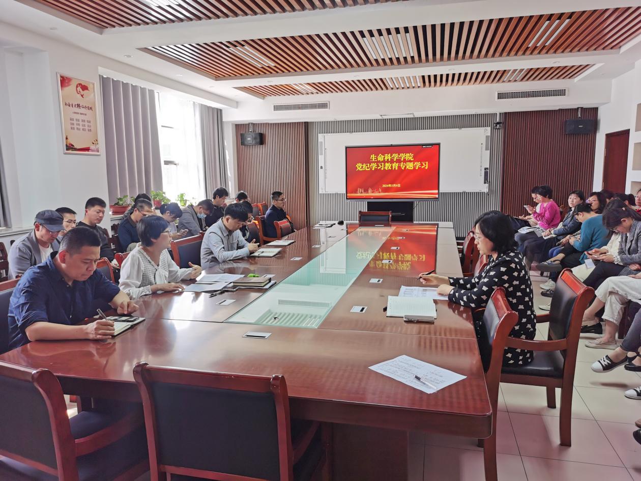 5月9日,amjs澳金沙门线路首页于生物楼C305召开党纪学习教育专题学习会议,学院全体教职工参加。会议由学院党委副书记、副院长刘妍玲主持。