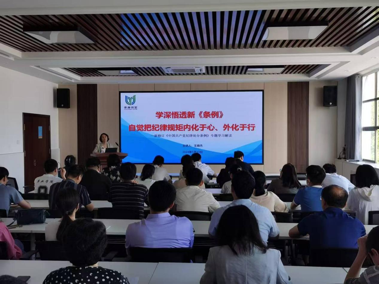 为了推动党纪学习教育扎实有序开展,多措并举筑牢思想防线,5月23日,amjs澳金沙门线路首页与草业学院在生物楼C312邀请纪委纪检监察室主任王晓杰作《学深悟透新<条例>,自觉将纪律规矩内化于心、外化于行》专题党课。会议由amjs澳金沙门线路首页党委书记孙景福主持。