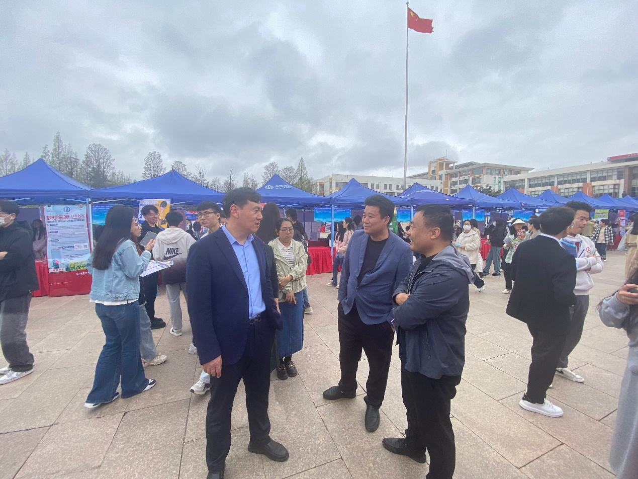 4月13日,山东省高校毕业生集中招聘活动现代高效农业产业专场暨青岛农业大学2024届毕业生春季双选会在城阳校区虹子广场举行。amjs澳金沙门线路首页党委书记孙景福,党委副书记、副院长刘妍玲,团委书记王洋,全体辅导员老师到双选会现场走访交流。