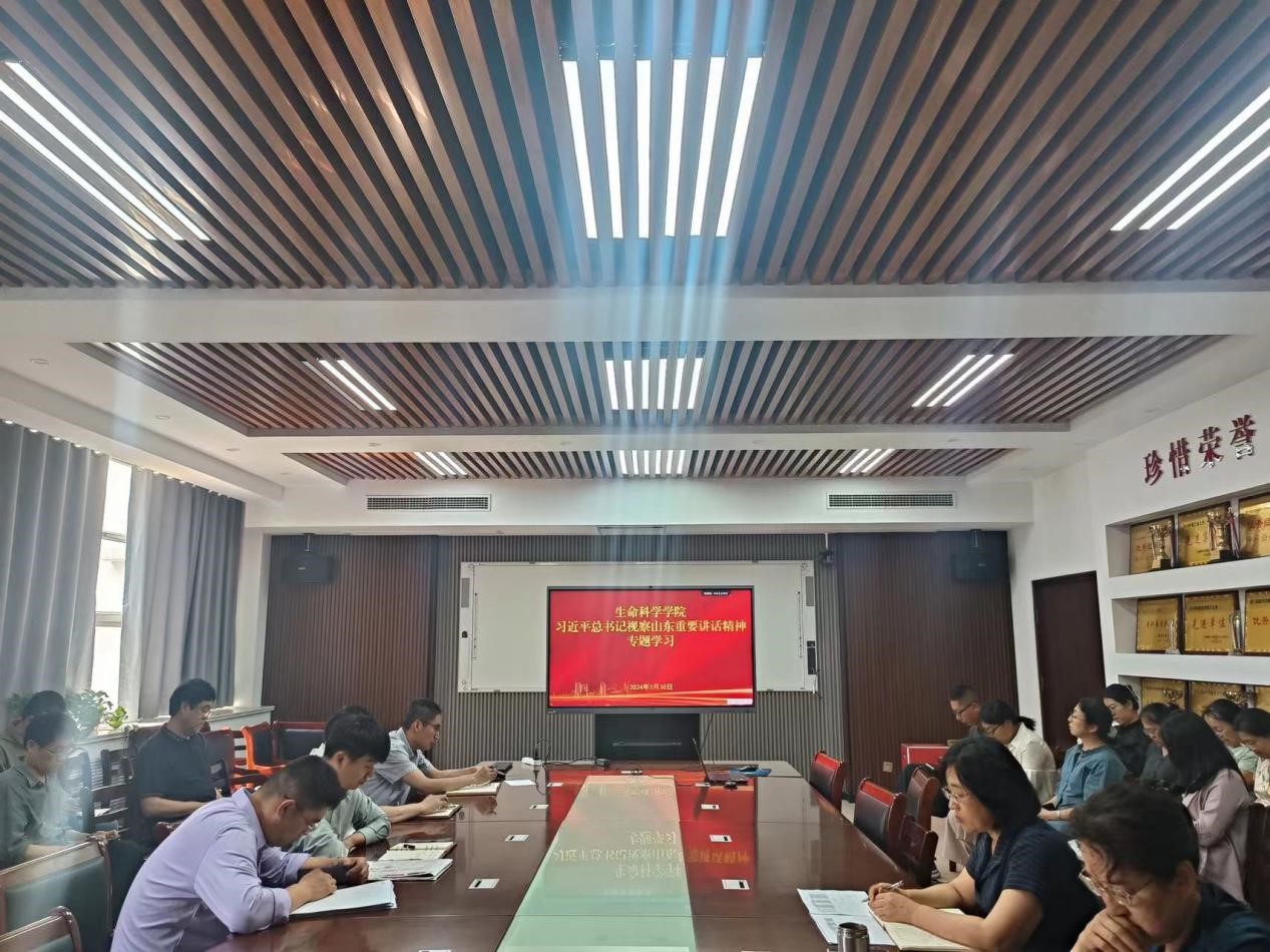 5月30日,amjs澳金沙门线路首页在生物楼C305召开学习习近平总书记视察山东重要讲话精神专题会议,学院全体教职工参加会议。会议由学院党委书记孙景福主持。