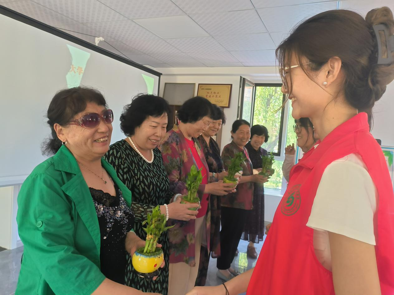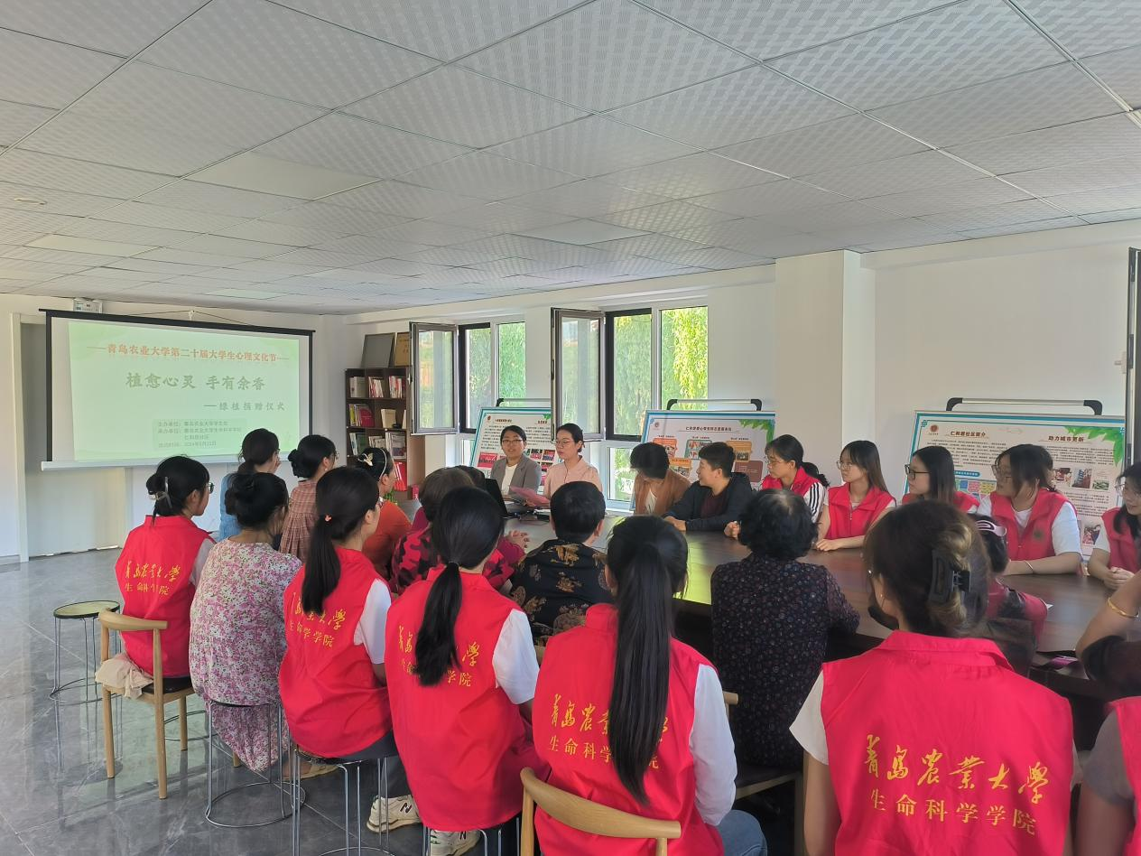 为进一步深化心理育人实践内涵,加强学生的心理调适能力,提升积极心理品质,由青岛农业大学学生工作处主办、amjs澳金沙门线路首页承办了第二十届心理文化节“植愈心灵 手有余香”植物培育活动。5月22日,学院在仁和居社区举行了绿植捐赠仪式,学生们亲手将经过21天精心自主培育的绿物赠予社区老人,传递爱与温暖。