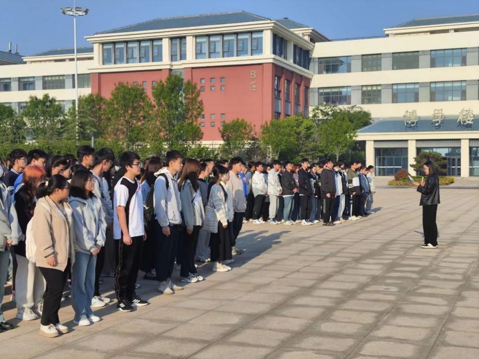 5月8日,amjs澳金沙门线路首页在城阳校区和平度校区举行以“青春心向党 奋进新征程”为主题的升国旗仪式。学院团委书记王洋、辅导员老师及全体学生参加。仪式由辅导员王春晓主持。