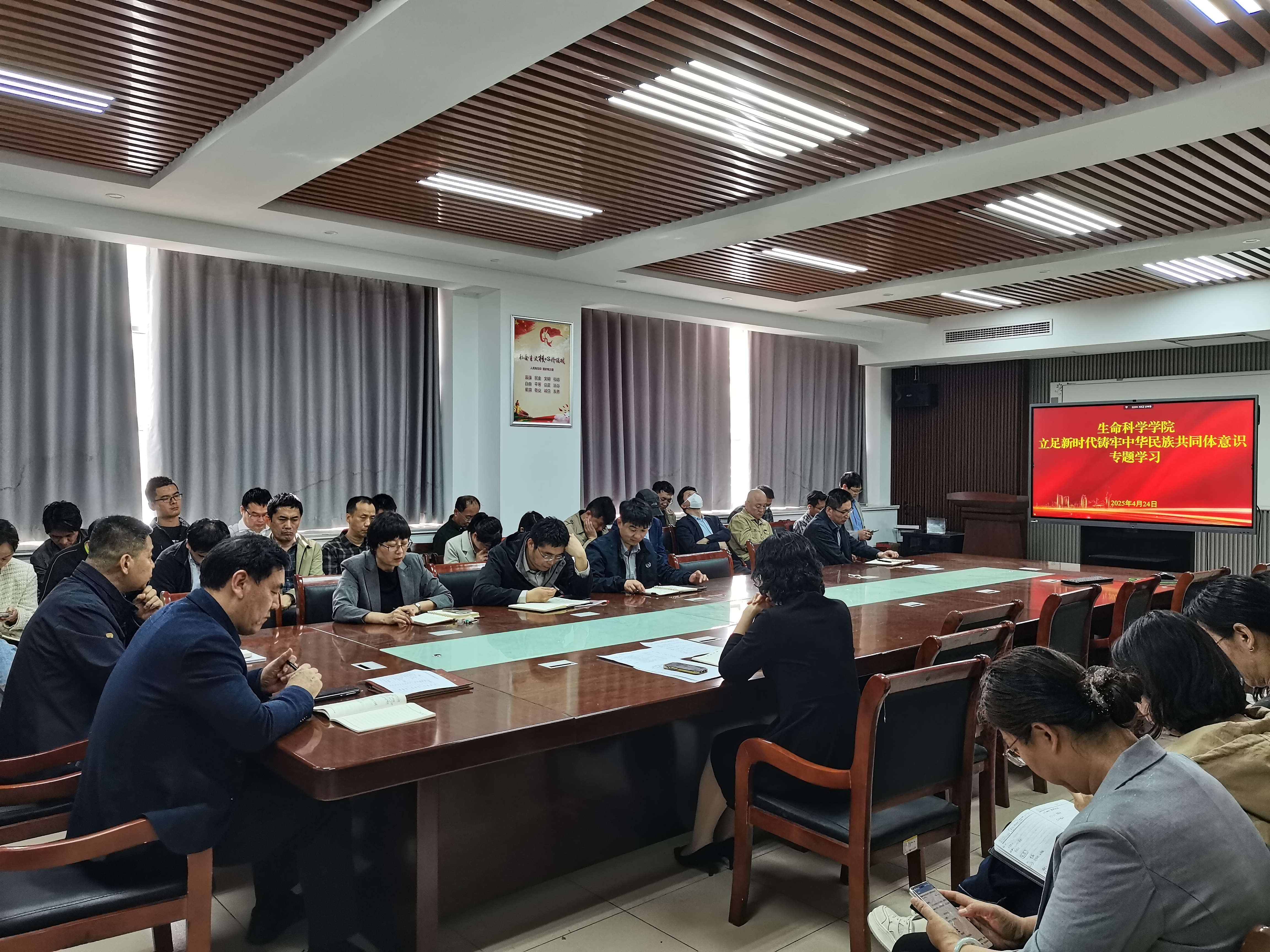 4月24日,amjs澳金沙门线路首页在生物楼C305召开立足新时代铸牢中华民族共同体意识专题学习会议,学院全体教职工参加。会议由学院党委书记孙景福主持。