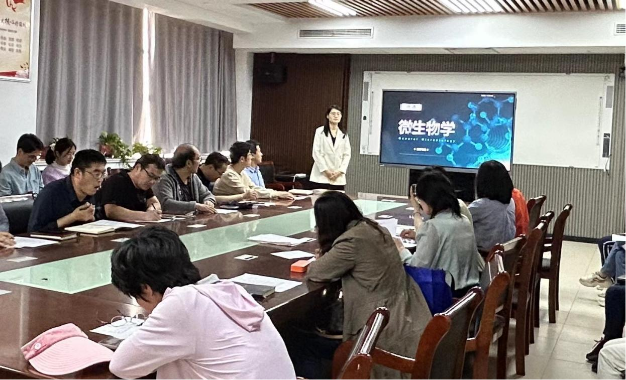 本次活动由优秀青年教师朱丽萍进行《普通微生物学》授课展示。朱老师教学经验丰富,曾获得山东省高校青年教师教学比赛三等奖,山东省教学创新大赛三等奖等。课堂上,朱丽萍老师采用“精妙绝伦”的课件,授课语言清晰流畅,授课条理清晰,知识点讲解深入浅出,将权威专家实例、科研前沿技术、社会关注热点等问题引入课程教学,图文并茂、重点突出,有效地调动了听课人员的学习积极性。传授知识的同时,课程思政自然渗透,如春风化雨。